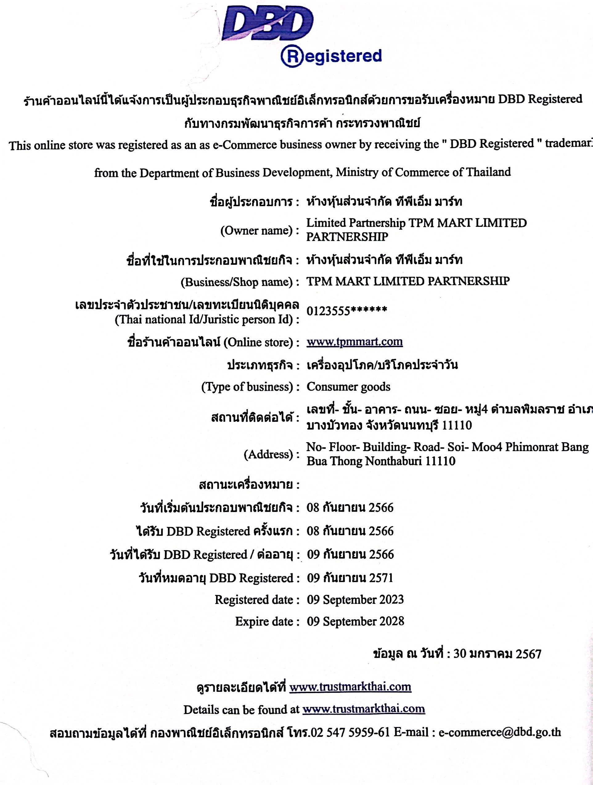 ID LINE OFFICE : @tpmmart