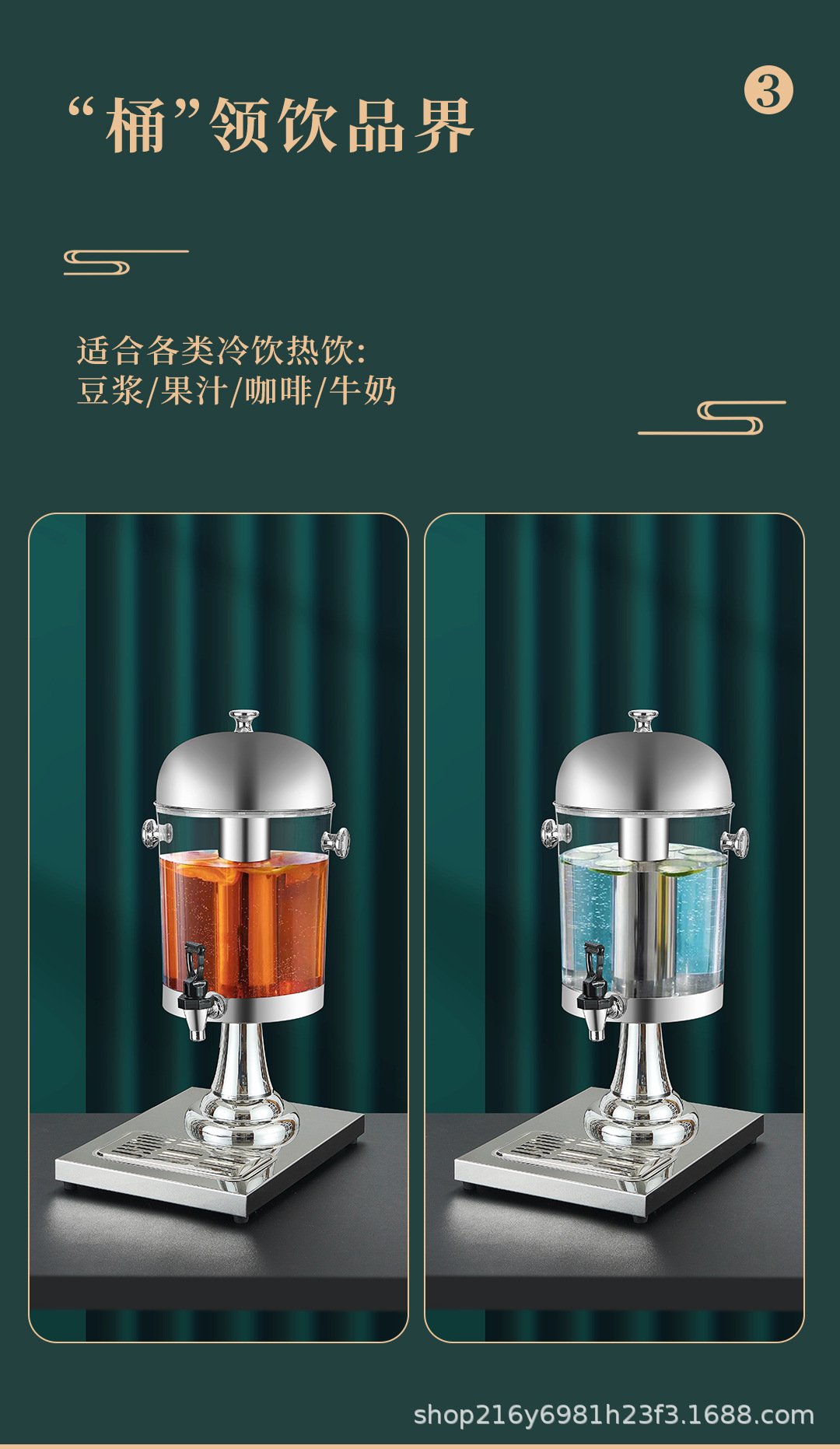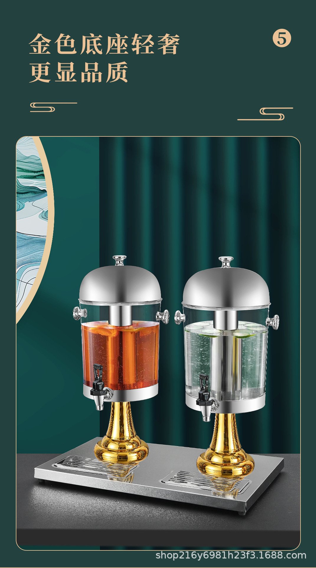 เครื่องจ่ายน้ำผลไม้แบบ 2 หัว ตัวเครื่องทำจากสเตนเลสสีเงินเงา ถังใสสำหรับแสดงเครื่องดื่มภายใน เหมาะสำหรับใช้งานในร้านอาหาร โรงแรม หรือบุฟเฟต์ เหมาะสำหรับน้ำผลไม้เย็นหรือเครื่องดื่มเย็นต่างๆ